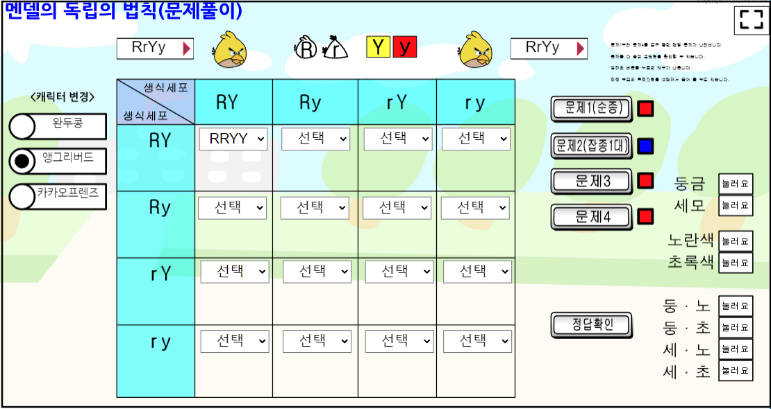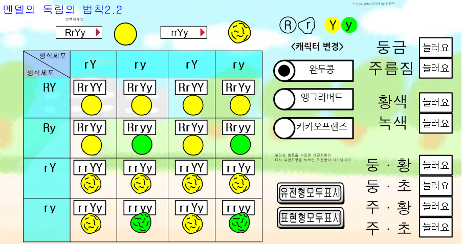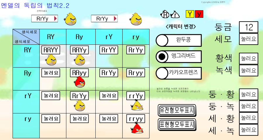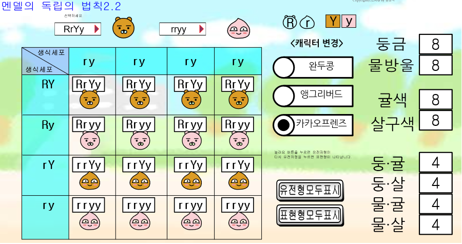 (주의 : 눌러요 버튼을 한번 누르면 유전자형으로 바뀌고 그 유전자형을 한번 더 누르면 표현형으로 바뀐다.)